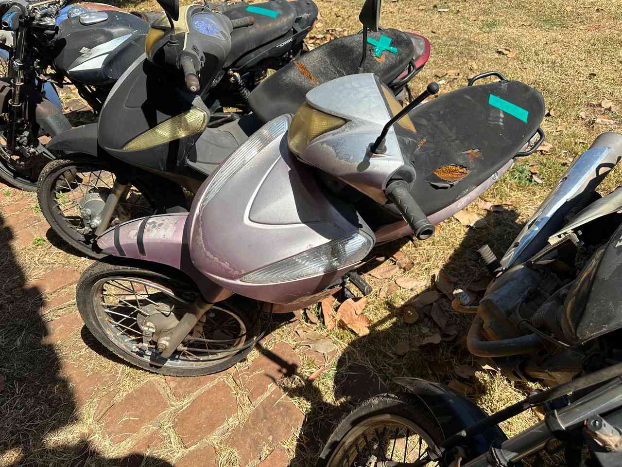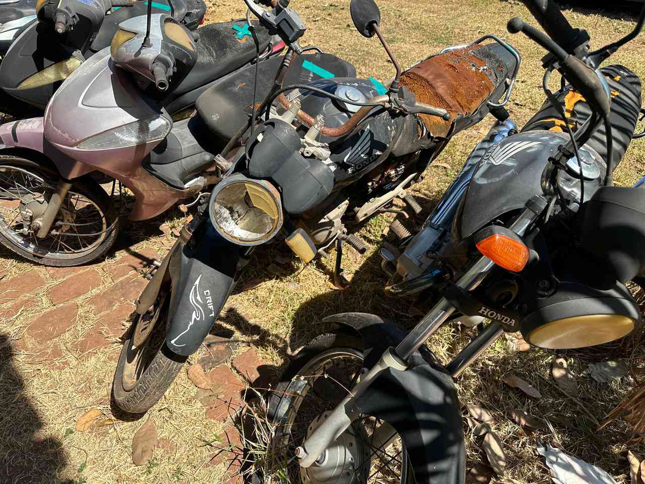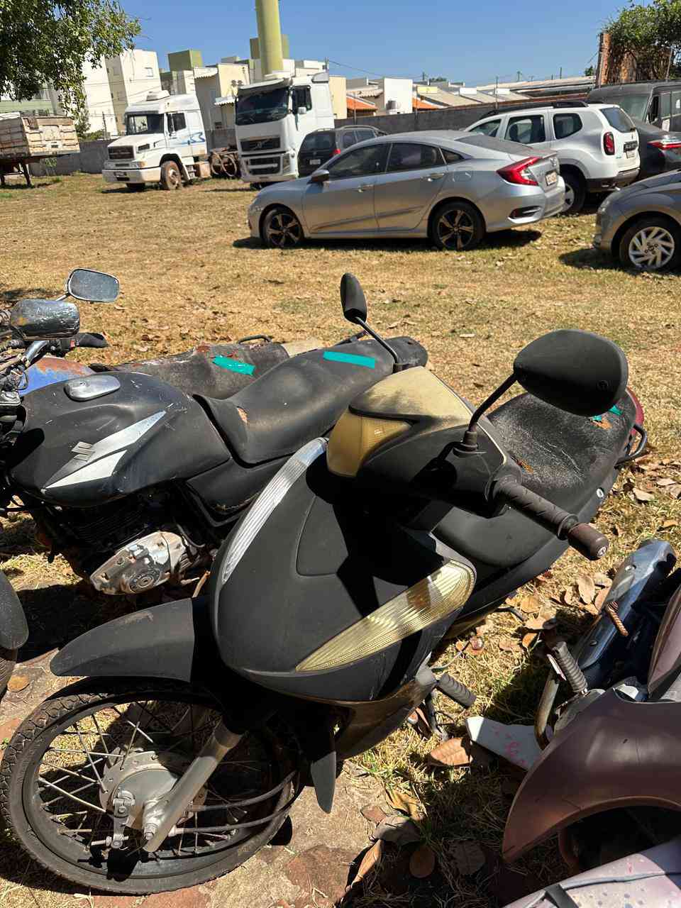 Motocicleta Honda BIZ 125 ES, cor preta, ano 2013, parada faltando peças e itens não relacionados.