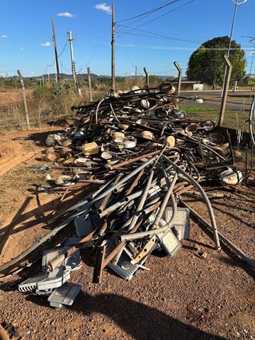 DESCONTO DE 30% APLICADO NO REPASSE CONFORME ITEM 1.3.1.2 DO EDITAL DE LEILÃO - SUCATAS E SUCATEADOS de Dezenas de braços de poste e luminárias públicas em alumínio/ferro, e reles