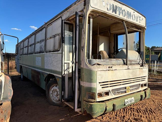 SUCATA SEM DOCUMENTO de Ônibus de cor verde, identificado pela placa KPC-6071, ano 1991, estrutura interna de ex-consultório, faltando peças/itens não relacionados