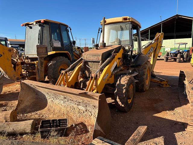 Retroescavadeira JCB, 3C Plus, vidros cabine quebrados, com braços e conchas traeira/dianteira, motor retificado sem garantia, parada
